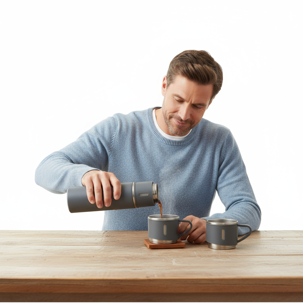 ¡Mantén tus bebidas perfectas por horas y compártelas con estilo gracias a nuestro práctico y elegante set de termo con tazas!